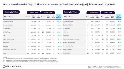 El analista principal de GlobalData, Aurojyoti Bose, manifestó que ha habido un notable aumento en el valor total de los acuerdos asesorados por Goldman Sachs entre el primer y tercer trimestre de 2025 en comparación con el mismo periodo del año anterior. Esto le permitió ascender del segundo al primer puesto en la clasificación de valor.