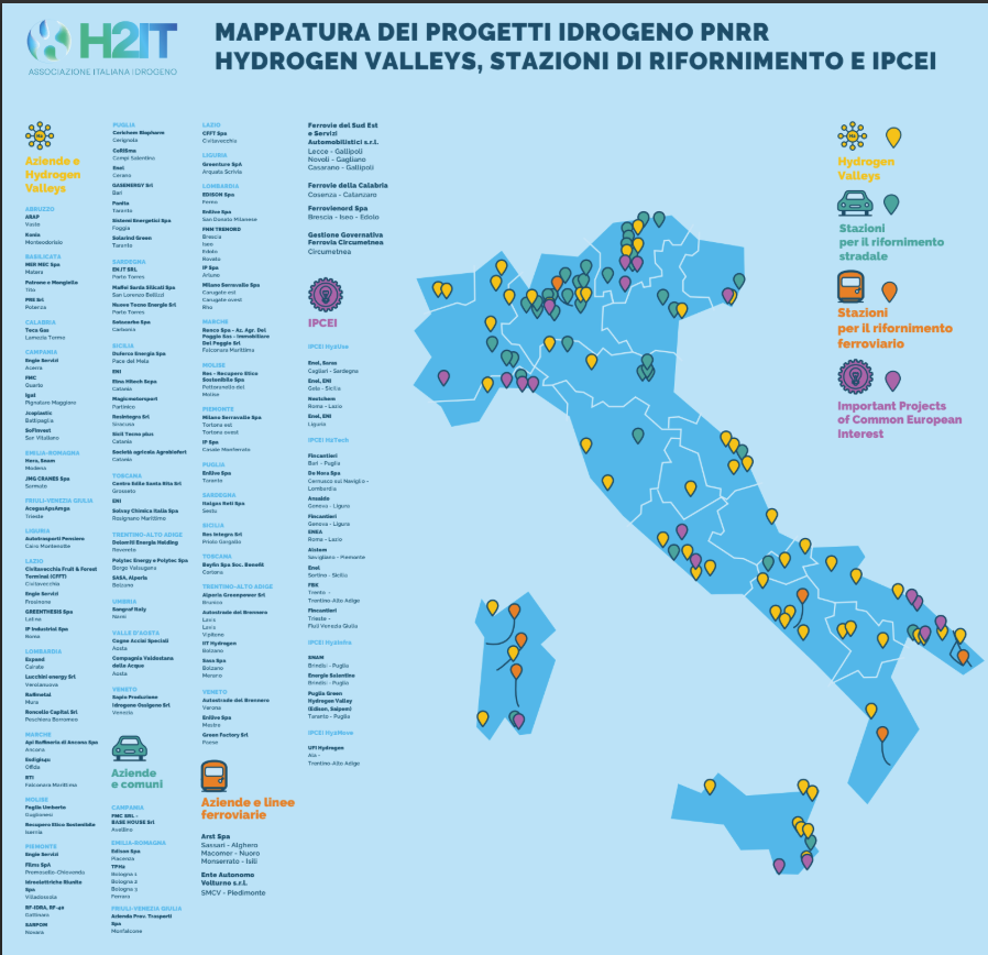• “El mapa demuestra que los proyectos no son intervenciones aisladas, sino parte de una visión compartida que permitirá a Italia posicionarse en la cadena de valor europea del hidrógeno”, señala la asociación.