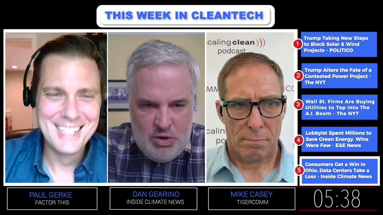 Este podcast semanal aborda las historias más relevantes sobre energía limpia y cambio climático en 15 minutos. Presentado por Paul Gerke de Factor This y Mike Casey de Tigercomm, el episodio de esta semana cuenta con la participación especial de Dan Gearino de Inside Climate News. Gearino habla sobre cómo una empresa de energía de Ohio ha prevalecido en la disputa sobre quién debe hacerse cargo de los costos de las mejoras de infraestructura de la red, derivadas del establecimiento de centros de datos.